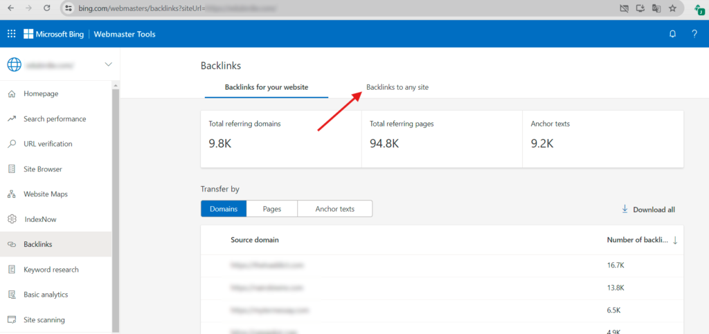 There, you can see all your backlinks, which is also useful to check regularly. However, in this case, we are going to focus on using this tool to find potential donors for guest posting to Backlinks to any sites:
